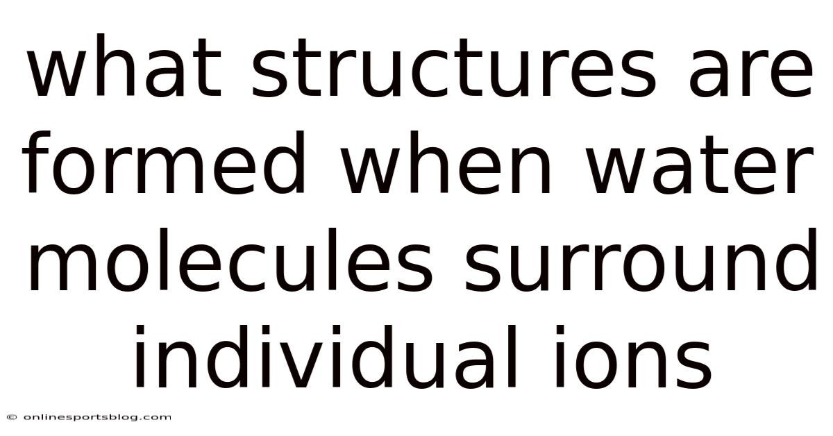 When considering the structures formed when water molecules surround individual ions, it's clear that these arrangements are not fixed or permanent but rather dynamic and responsive to environmental conditions. That said, the hydration shell—the layer of water molecules immediately surrounding an ion—varies in size, geometry, and stability depending on the ion's charge, size, and the surrounding solution's properties. To give you an idea, small, highly charged ions like Mg²⁺ or Al³⁺ tend to attract more water molecules, forming a tighter and more ordered first shell, while larger ions like K⁺ or Cl⁻ have more loosely bound hydration layers That alone is useful..