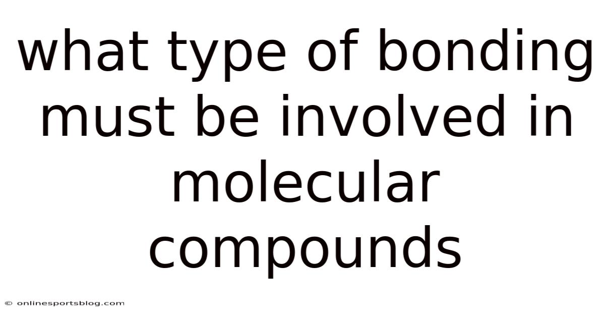 When exploring the fundamental building blocks of matter, one question consistently stands out: what type of bonding must be involved in molecular compounds? Still, the answer lies in covalent bonding, a precise and elegant interaction where atoms share electrons to achieve chemical stability. Unlike ionic or metallic bonds, covalent bonds form the structural foundation of molecular compounds, creating discrete, independent units that make up everything from the water we drink to the complex proteins that sustain life. Understanding this specific bonding mechanism not only clarifies how molecules form but also explains why these substances exhibit such distinct physical and chemical behaviors in the natural world.