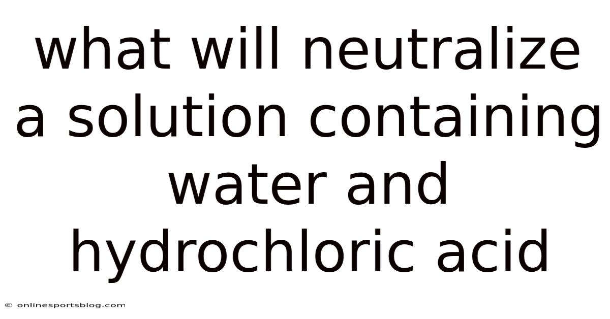 What Will Neutralize a Solution Containing Water and Hydrochloric Acid