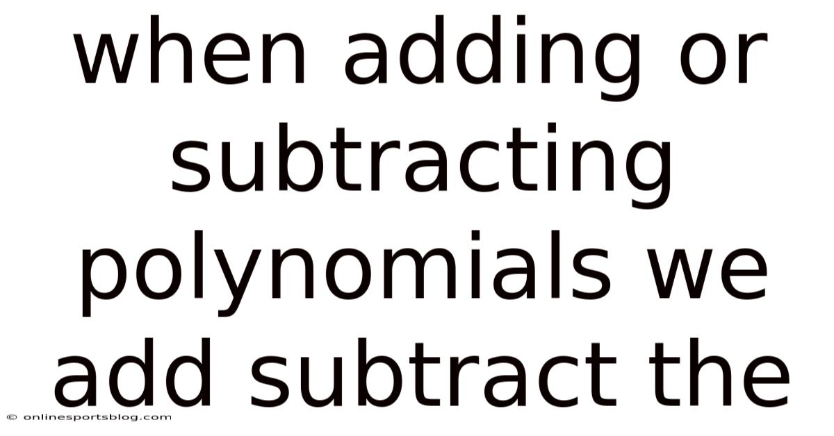 Understanding how to add or subtract polynomials is a fundamental skill in algebra that serves as a gateway to higher-level mathematics, including calculus and physics. When students first encounter these long strings of numbers and variables, they often feel overwhelmed by the complexity. Still, the secret to mastering this process lies in one simple, golden rule: when adding or subtracting polynomials, we add or subtract the like terms. This principle simplifies seemingly chaotic expressions into manageable, organized mathematical statements Simple as that..