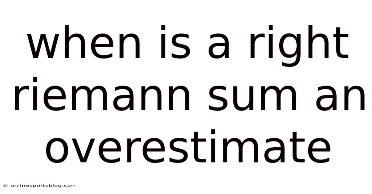 Understanding when a right Riemann sum becomes an overestimate is crucial for anyone delving into the world of numerical integration and approximation techniques. This article will explore the concept of Riemann sums, focusing specifically on the right Riemann sum, and explain the conditions under which it tends to overestimate the actual value of the integral. By the end of this discussion, you’ll gain a clearer picture of how these sums interact with the functions being integrated and the implications for accurate calculations Easy to understand, harder to ignore..