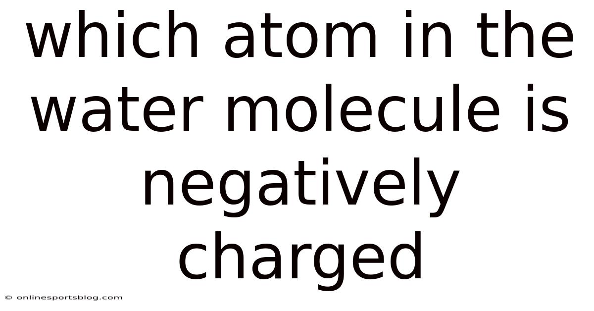 The question of which atom in the water molecule is negatively charged is a fundamental concept in chemistry that often sparks curiosity. Practically speaking, while water is a neutral molecule overall, its atoms are not evenly charged. Because of that, this charge separation is the result of the molecule’s polar covalent bonding, which is critical to understanding water’s unique properties. Instead, the oxygen atom in the water molecule carries a partial negative charge, while the hydrogen atoms carry partial positive charges. Water (H₂O) is one of the most essential molecules in the universe, yet its simple structure hides a complex interplay of forces that determine its behavior. At the heart of this behavior lies the distribution of electrical charges within the molecule. The negative charge on the oxygen atom plays a central role in how water interacts with other substances, making it a cornerstone of biological and chemical processes.