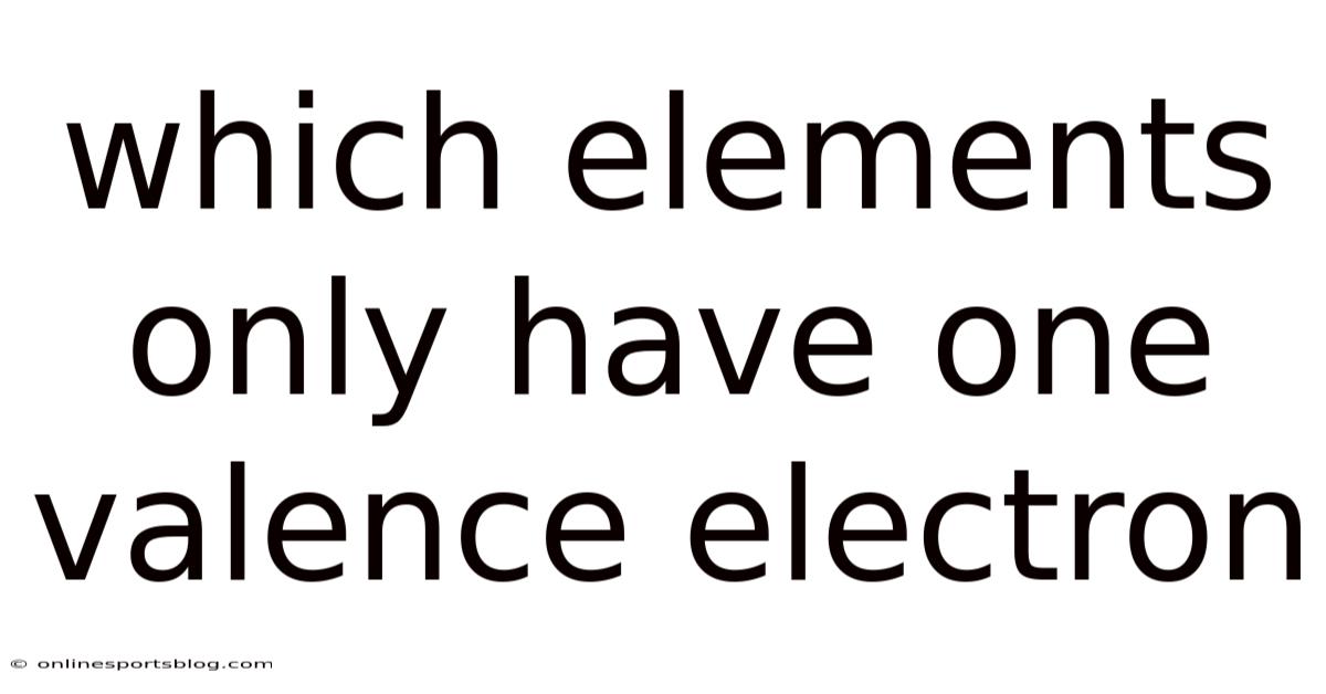 Understanding the elements that possess only one valence electron is a fascinating journey into the heart of chemistry. On top of that, these elements, often referred to as monovalent or single valence elements, play a unique role in the periodic table. Their distinctive properties make them essential in various scientific and industrial applications. In this article, we will explore what these elements are, how they behave, and why they matter in the world of chemistry.