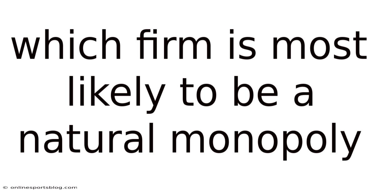 A natural monopoly occurs when a single firm can supply a good or service to an entire market at a lower cost than could multiple firms. This economic phenomenon arises from specific market conditions where the nature of production creates inherent advantages for large-scale operations, making competition impractical or inefficient. Understanding which firms are most likely to become natural monopolies requires examining the underlying economic principles, industry characteristics, and market structures that favor single-firm dominance Not complicated — just consistent..