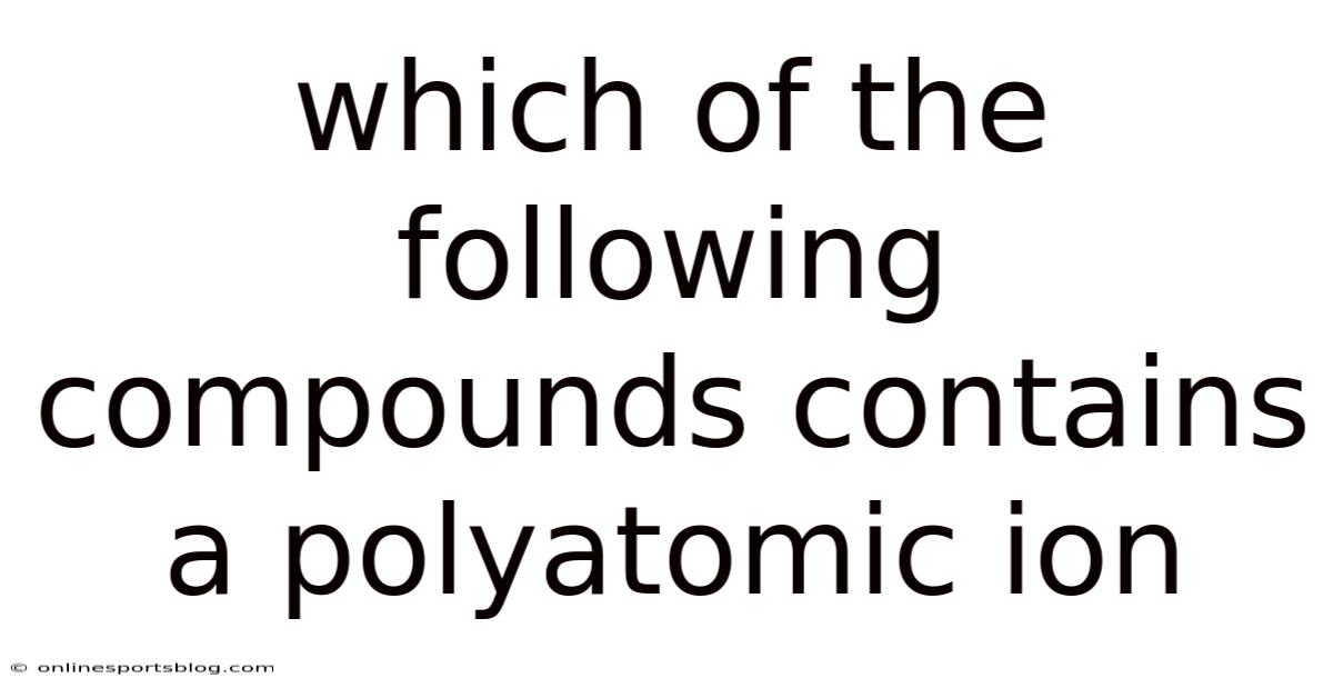 When studying chemistry, especially in the context of ionic compounds, don't forget to understand the difference between simple ions and polyatomic ions. Which means simple ions are single atoms that have gained or lost electrons, such as Na⁺ or Cl⁻. In real terms, polyatomic ions, on the other hand, are groups of atoms bonded together that carry an overall charge. So naturally, examples include sulfate (SO₄²⁻), nitrate (NO₃⁻), and ammonium (NH₄⁺). In this article, we will explore which of the following compounds contains a polyatomic ion, explain the concept in detail, and provide examples to help you master this topic.
