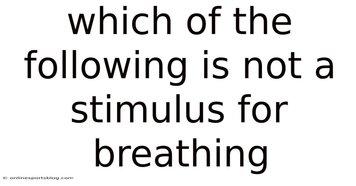 Breathing is an automatic yet finely tuned process that keeps oxygen flowing to our cells and removes carbon dioxide, the by‑product of metabolism. Here's the thing — **,” the correct answer is usually a factor that does not directly influence the respiratory control centers. While we often think of the act of inhaling and exhaling as a simple reflex, the nervous system actually monitors several internal signals before deciding whether to increase, decrease, or maintain the respiratory rate. That said, these signals are called stimuli for breathing and include chemical cues from the blood, mechanical feedback from the lungs, and even higher‑order brain inputs. In a typical multiple‑choice question that asks, “**Which of the following is not a stimulus for breathing?This article explores the major physiological stimuli that do drive ventilation, explains why certain factors are irrelevant, and ultimately clarifies which option is not a true respiratory stimulus Worth knowing..