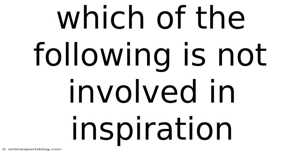 Breathing is the rhythm of life, an automatic process we rarely consider until it becomes difficult. At the heart of this vital function lies inspiration, the active phase where air is drawn into the lungs. Now, understanding which muscles and structures are—and are not—involved in this process is fundamental for students of anatomy, athletes, singers, and anyone interested in health. A common test question asks: "which of the following is not involved in inspiration?Practically speaking, " The answer typically points to muscles of expiration, specifically the abdominal muscles, but a full appreciation requires exploring the detailed orchestra of respiration. This article will clarify the mechanics of inspiration, identify the key players, and definitively highlight which structures are excluded from this inhaling process That's the whole idea..