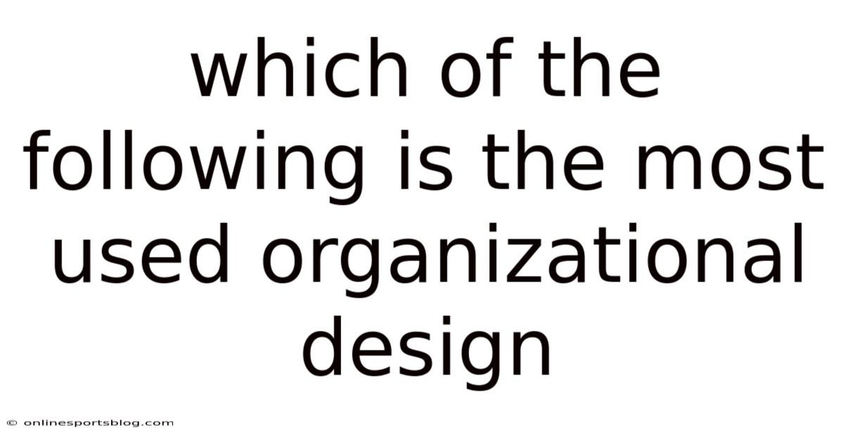 The functional organizational design remains the most widely used structure because it offers a clear, cost‑effective, and scalable framework that aligns with traditional management practices and regulatory requirements. Its emphasis on specialization and hierarchical clarity makes it especially suitable for firms operating in stable or moderately dynamic environments.