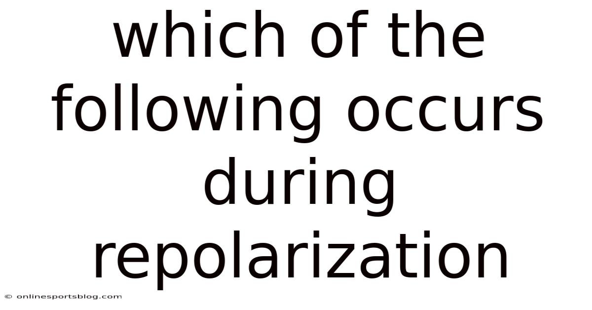 Repolarization is not a single event but a cascade of carefully timed ion movements. So the central question—**which of the following occurs during repolarization? **—has a definitive answer: the primary event is the efflux (outflow) of potassium (K⁺) ions from the cell, coupled with the inactivation of sodium (Na⁺) channels. Let’s break down exactly how this unfolds.