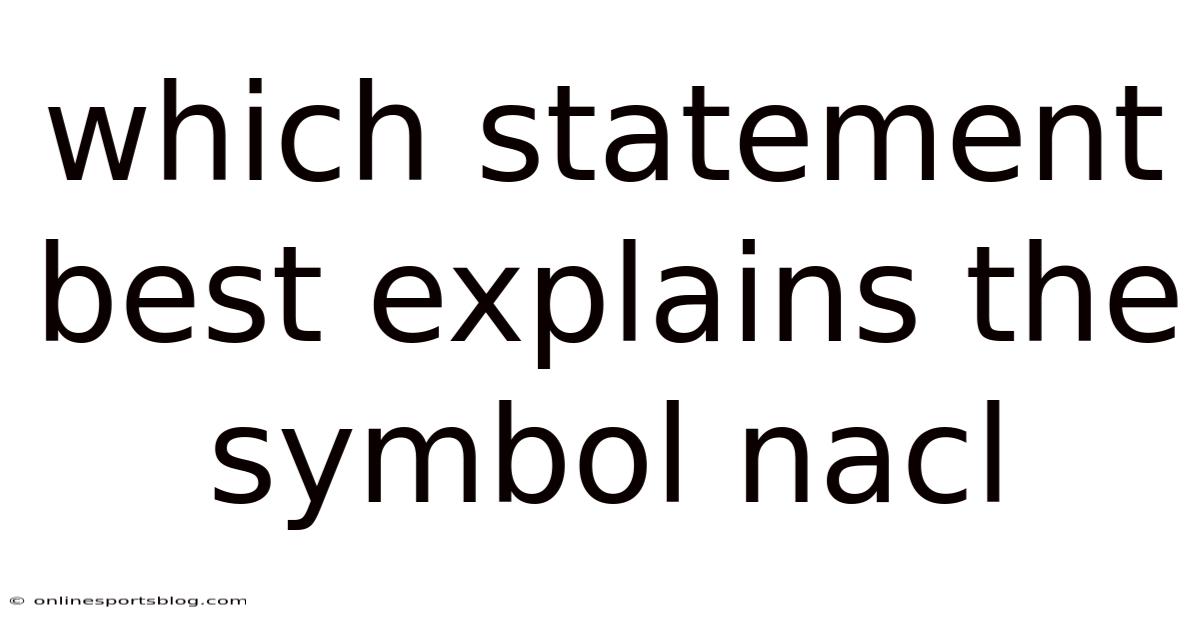 When students encounter chemistry questions asking which statement best explains the symbol NaCl, the answer always points to a fundamental concept in chemical bonding and compound formation. NaCl is the chemical formula for sodium chloride, an ionic compound created when one sodium atom donates an electron to one chlorine atom. So naturally, this simple yet powerful combination gives us the everyday substance known as table salt, but its scientific significance extends far beyond the kitchen. Understanding what NaCl truly represents unlocks deeper insights into atomic structure, ionic bonding, and the way elements interact to form stable compounds.