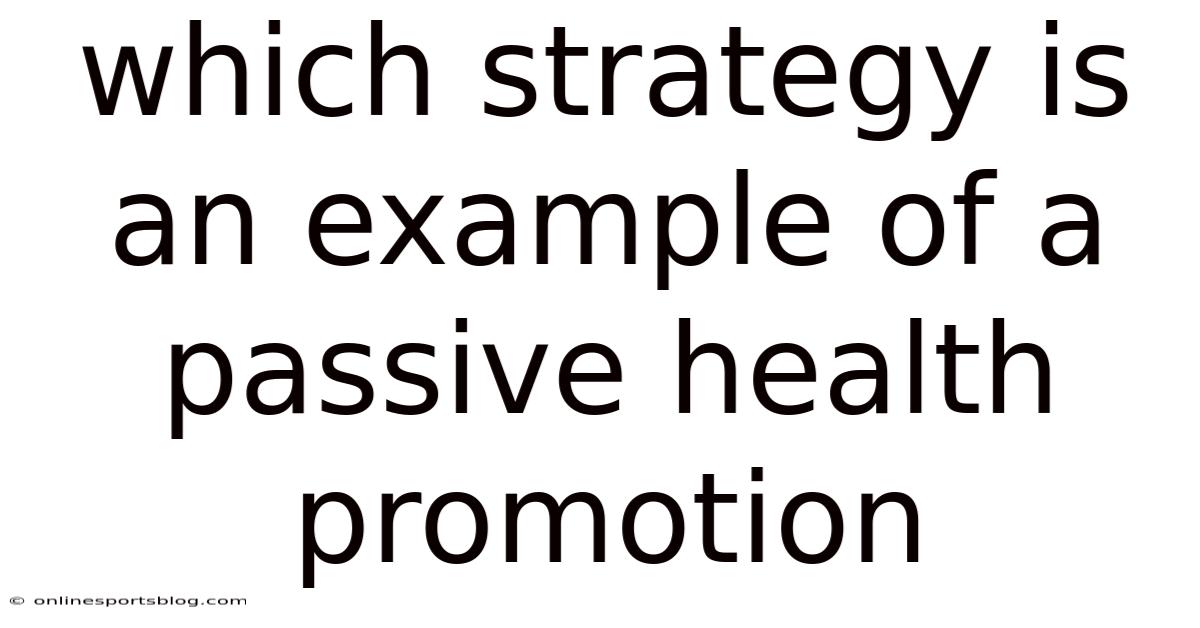 Understanding the concept of passive strategies in health promotion is essential for anyone looking to enhance their knowledge about public health initiatives. In this article, we will break down the specifics of passive health promotion strategies, exploring their definitions, benefits, and applications in various settings. By the end of this discussion, you will have a comprehensive understanding of how these strategies can positively impact communities and individuals alike Worth knowing..
