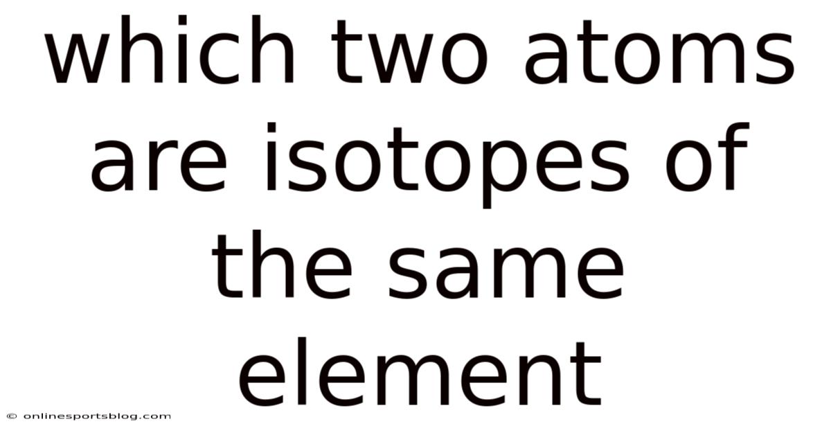 To determine which two atoms are isotopes of the same element, we must first understand the basic building blocks of matter. An atom consists of a nucleus containing protons and neutrons, surrounded by orbiting electrons. To give you an idea, any atom with six protons is carbon, regardless of its neutron count. The key to identifying isotopes lies in comparing the atomic number and the mass number (the sum of protons and neutrons). The number of protons in the nucleus, known as the atomic number, defines the identity of the element. Isotopes arise when atoms of the same element have different numbers of neutrons, leading to variations in mass but not in chemical behavior. If two atoms share the same atomic number but have different mass numbers, they are unequivocally isotopes of the same element Not complicated — just consistent. Still holds up..