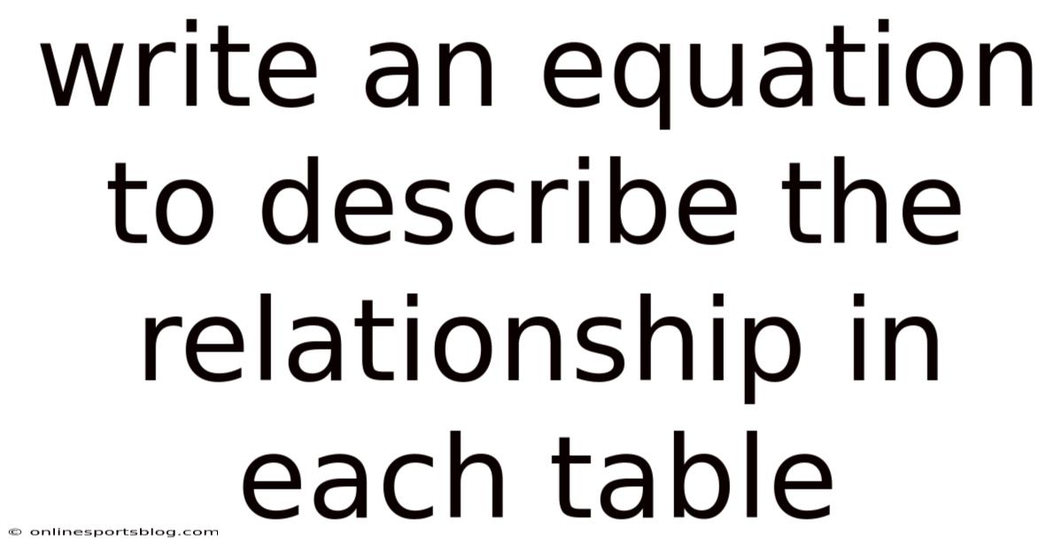 Learning to write an equation to describe the relationship in each table is a fundamental skill that bridges the gap between numerical data and mathematical models. By understanding the different types of relationships—linear, quadratic, exponential, and others—you can extract meaningful equations that capture the underlying patterns in your data.