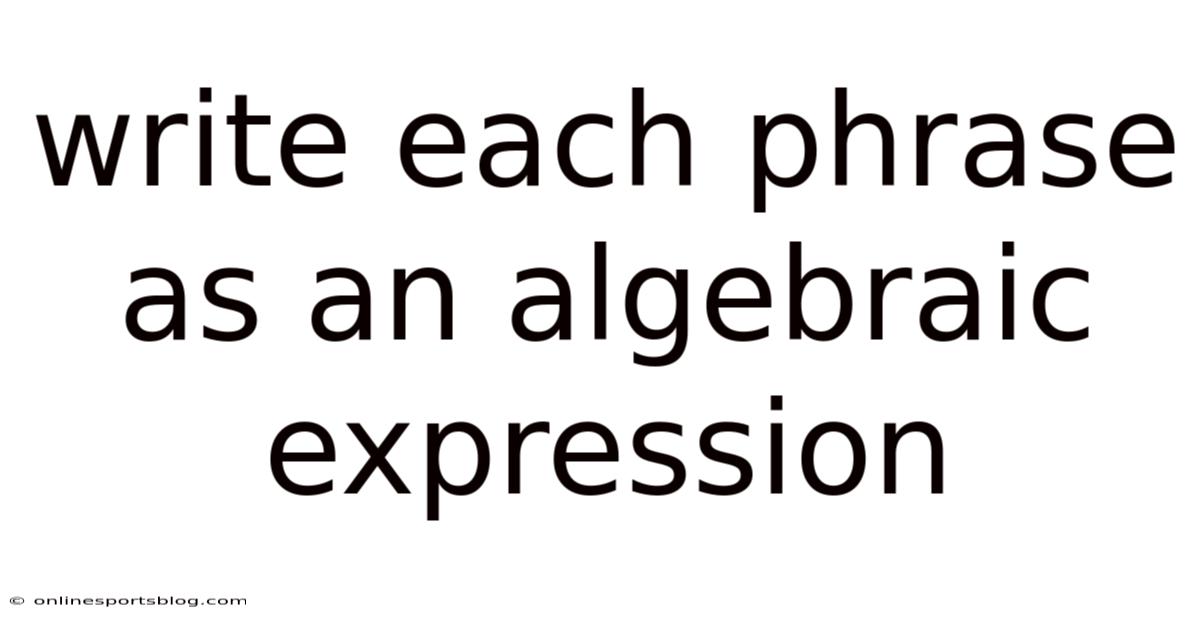 Writing each phrase as an algebraic expression is a fundamental skill in algebra, bridging the gap between everyday language and the symbolic language of mathematics. In practice, this process allows us to translate real-world situations, descriptions, or mathematical statements into precise mathematical statements using variables, constants, and operations. Worth adding: mastering this translation unlocks the ability to solve problems, model scenarios, and communicate mathematical ideas efficiently. This article provides a practical guide to understanding and performing this essential algebraic task.